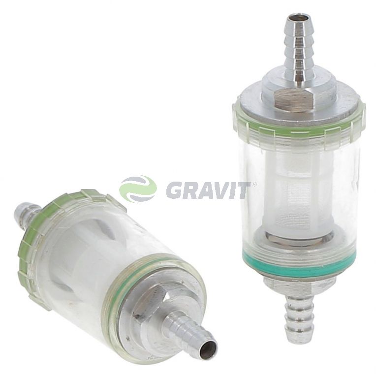 Przepływowy filtr paliwa na wężyk 8mm, pasujący do ciągników m.n. Claas Ares Arion Axion Ergos.