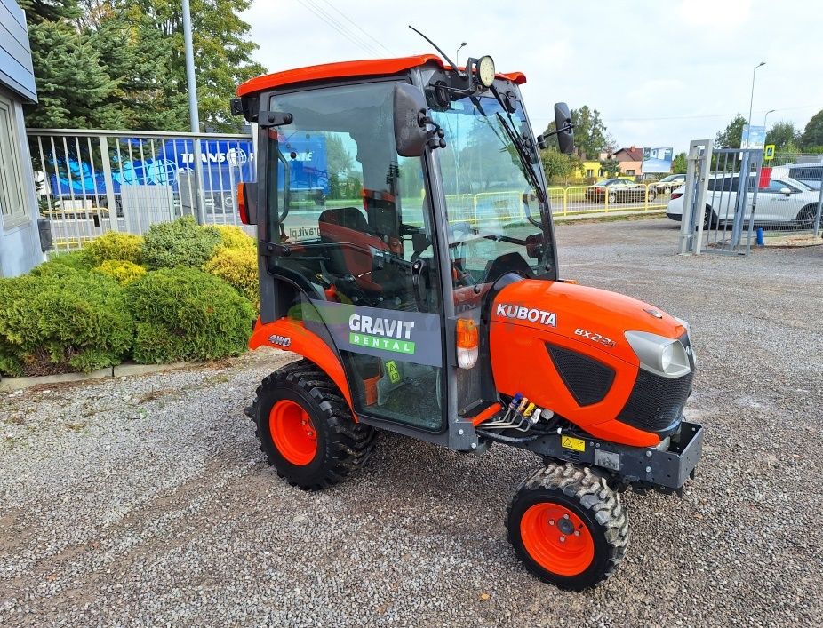 Kubota BX231 to następca legendarnego modelu BX2350. Ciągnik jako jeden z nielicznych na rynku w standardzie wyposażony został w rozbudowany układ hydrauliczny (joystick do sterowania hydrauliką przednią oraz osobny rozdzielacz do gniazd tylnych), wałek międzyosiowy umożliwiający podpięcie agregatu koszącego bądź dwustopniową przekładnię hydrostatyczną z pedałem kołyskowym do zmiany kierunku jazdy.