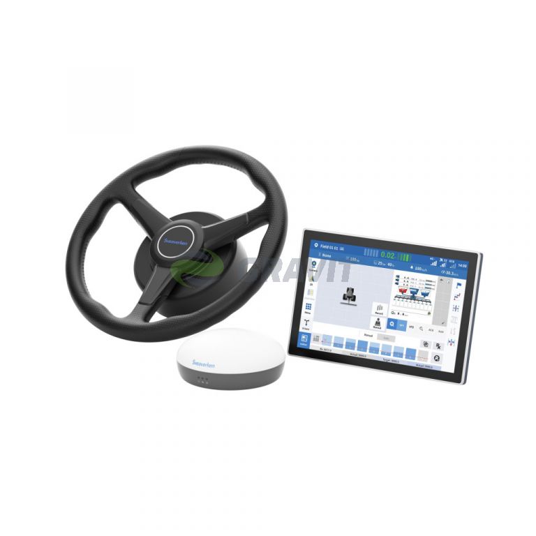 - W zestawie znajduje się odbiornik GNSS oraz duża kierownica o średnicy 410 mm, zapewniająca komfort i precyzję działania.