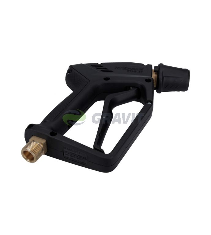 Krótki pistolet myjący marki Kranzle. Wyposażony w szybkozłącze D12, które zapewnia szybki i pewny montaż do lancy i węża. Konstrukcja pistoletu jest kompaktowa i ergonomiczna — ułatwia pracę w ciasnych przestrzeniach i przy dłuższym użytkowaniu, a solidne materiały gwarantują odporność na intensywne użytkowanie. Pistolet umożliwia precyzyjne sterowanie strumieniem wody i sprawdzi się zarówno przy myciu samochodów i maszyn, jak i przy pracach porządkowych wokół domu i w warsztacie.