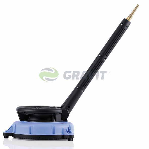 Round Cleaner UFO długi to optymalne rozwiązanie do szybkiego i skutecznego czyszczenia dużych, płaskich powierzchni, takich jak tarasy, podjazdy lub ścieżki. Plastikowa osłona niezawodnie chroni użytkownika przed rozpryskami wody. Zintegrowana rękojeść umożliwia ponadto wygodne i precyzyjne czyszczenie powierzchni pionowych, takich jak ściany, fasady lub bramy garażowe. Ślizgacze szczotkowe na spodzie plastikowej osłony gwarantują stabilne i delikatne prowadzenie, co zapewnia równomierne i bezsmugowe czyszczenie.
